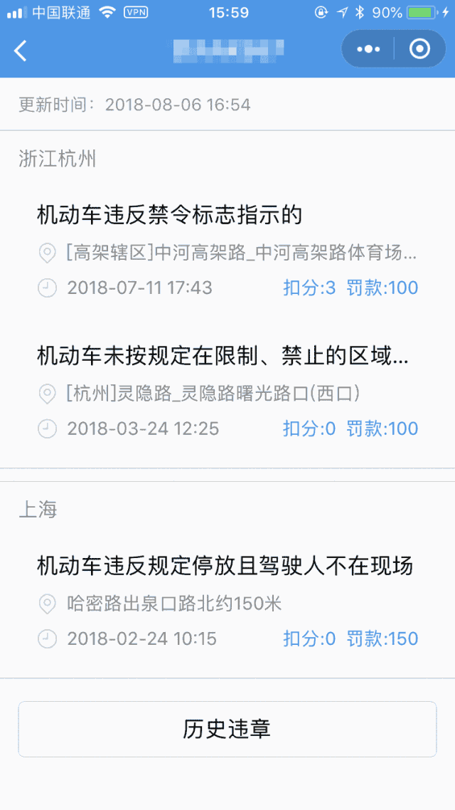 费用说明:比如违章罚500扣六分,如果在平台上一分大约是100元的话,那么处理该次违章的费用为,500元罚款+600元分数费=1100元。刷卡扣款,等待代扣分处理完毕即可。