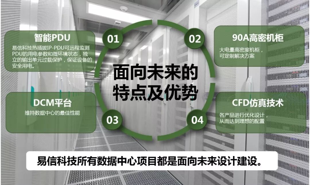 易信科技运营总裁叶辉表示,“我们不单只是从节能去做未来的数据中心,随着现在大数据、人工智能、基因检测等技术的发展,用电需求越来越高,所以我们在百旺信云数据中心三楼和四楼都专门为了一些行业做铺垫,也就是90A的机柜,比传统的性能高出了9倍,同时还提高了可靠性。”